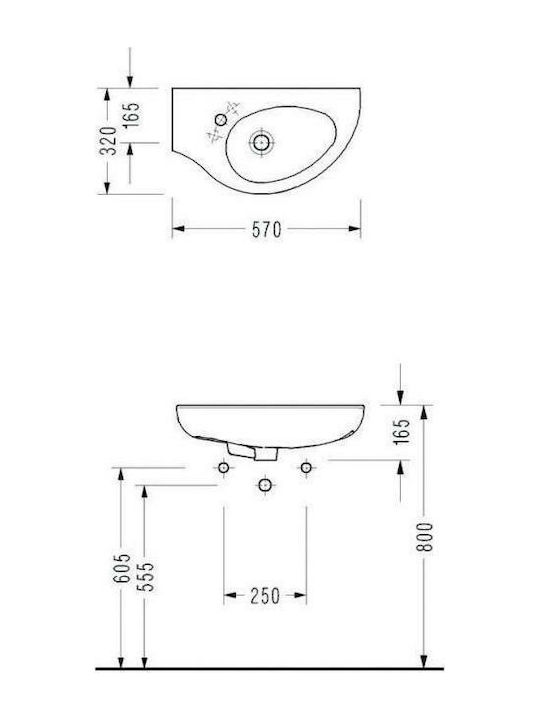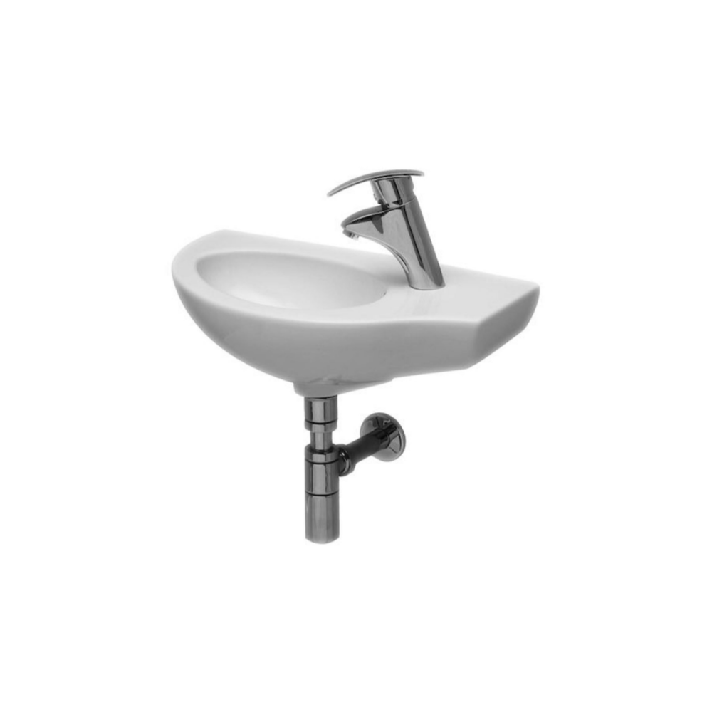 Κρεμαστός νιπτήρας μπάνιου σε οβάλ σχήμα από πορσελάνη της εταιρείας Serel, με οπή για μπαταρία. Αποτελεί ιδανική λύση για εξοικονόμηση χώρου σε μικρά μπάνια.