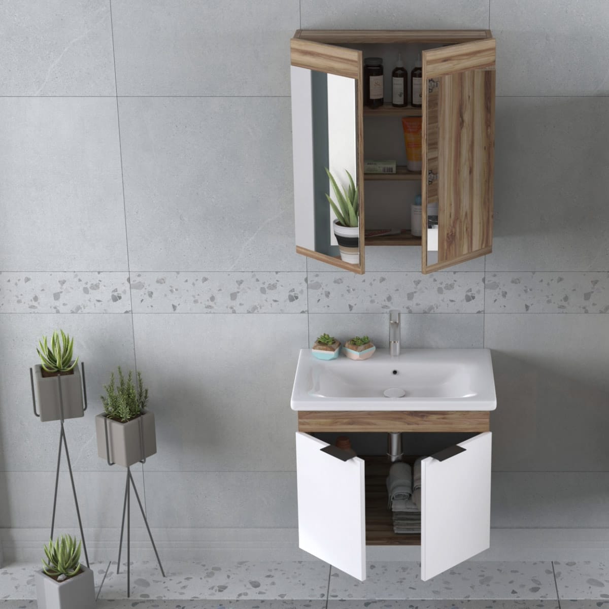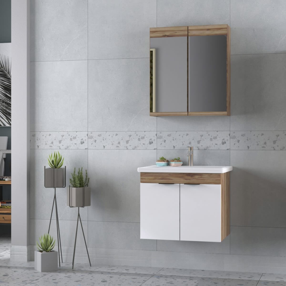 Έπιπλο Μπάνιου Επιτοίχιο 65cm Carino Violin & White Matt Amabile 6244270833