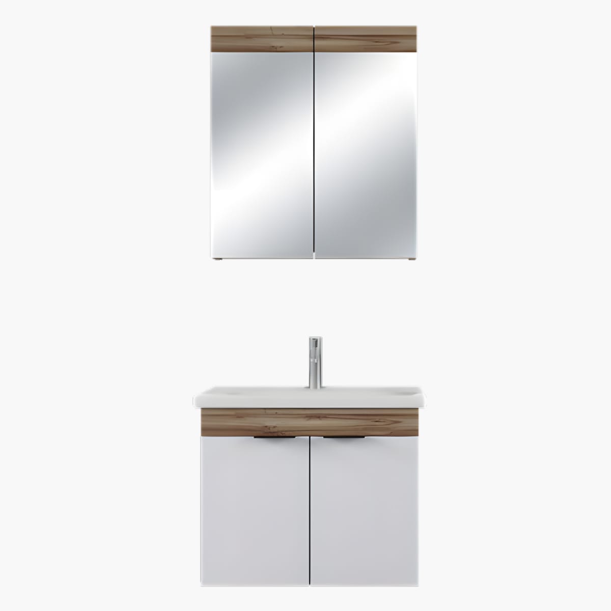 Σετ έπιπλο μπάνιου της εταιρείας Amabile, αποτελούμενο από πάγκο, νιπτήρα και καθρέφτη.