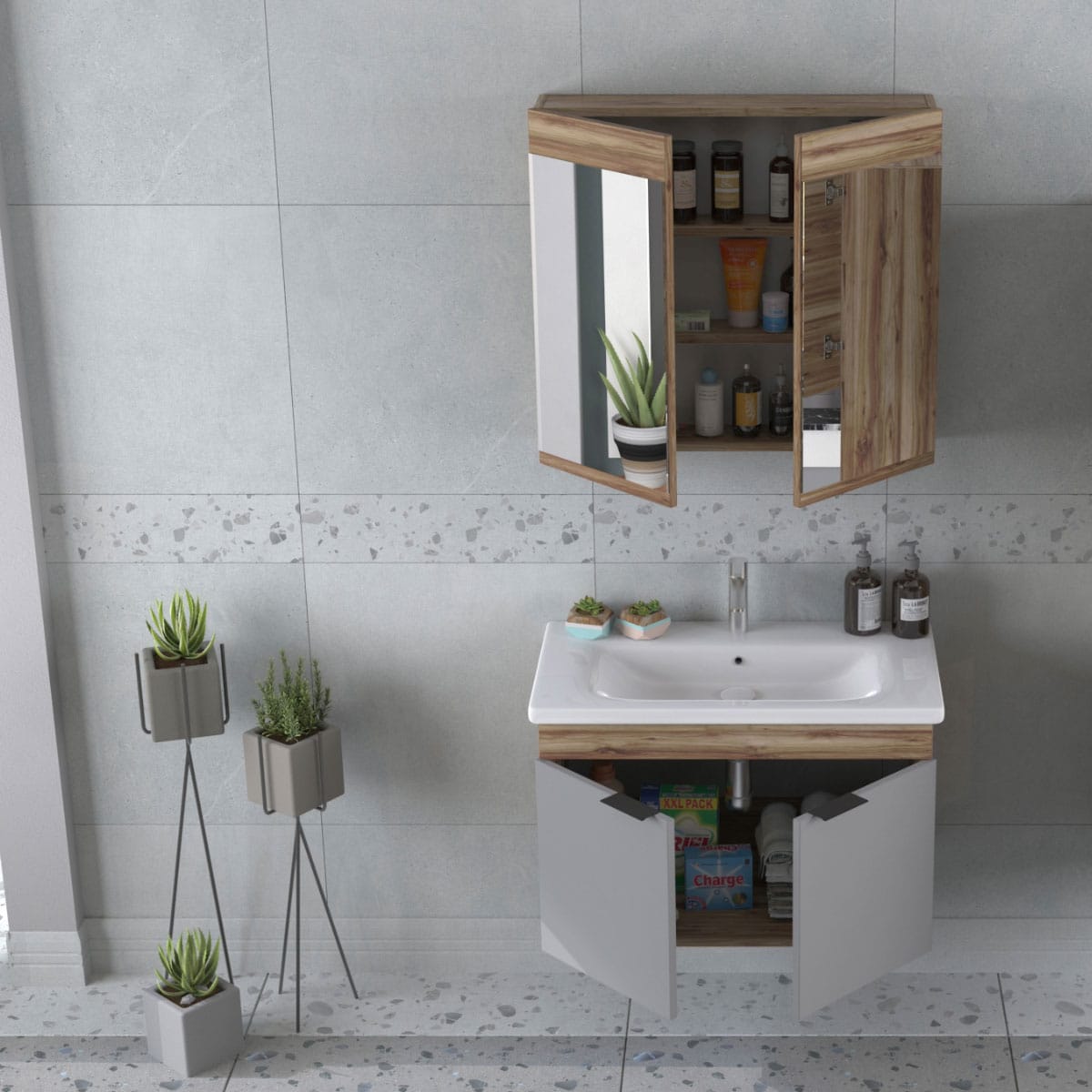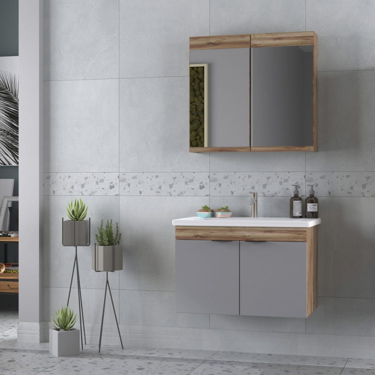 Το επιτοίχιο μοντέλο Violin & Grey Matt είναι σχεδιασμένο για να προσφέρει λειτουργικότητα και στυλ. Σε γκρι χρώμα με μηχανισμό soft close, αυτό το σετ αποτελεί την ιδανική προσθήκη για κάθε μοντέρνο μπάνιο. Είναι κατασκευασμένο από υψηλής ποιότητας MFC (Μελαμίνη) που προσφέρει αντοχή και μακροχρόνια χρήση.