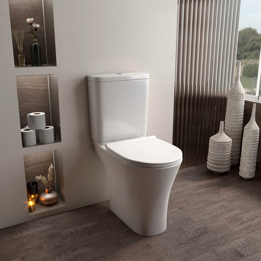 Το σετ λεκάνης Forma White Glossy προσφέρει την τέλεια ισορροπία ανάμεσα στην κομψότητα και την υγιεινή, καθιστώντας το ιδανική επιλογή για το μπάνιο ή το WC σας. Κατασκευασμένη από υψηλής ποιότητας πορσελάνη με λευκό γυαλιστερό φινίρισμα, αυτή η επιδαπέδια λεκάνη διαθέτει τεχνολογία rimless, εξασφαλίζοντας απόλυτη καθαριότητα και ευκολία στον καθαρισμό. Το σετ περιλαμβάνει slim κάλυμμα Duroplast με soft close και καζανάκι διπλής ροής, προσφέροντας μέγιστη πρακτικότητα και εξοικονόμηση νερού.