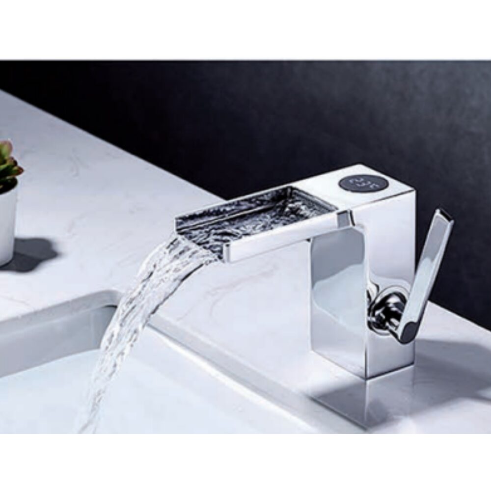 Μπαταρία νιπτήρα τύπου καταρράκτη με ψηφιακή ένδειξη θερμοκρασίας.